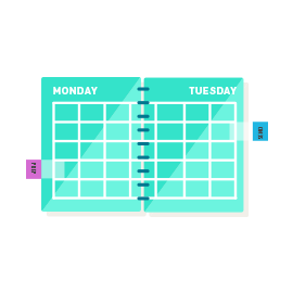 Wybierz swoje ulubione, jasne kolory Zakładek Indeksujące Post-it® i oznacz nimi dzisiejsze zadania lub czas przeznaczony na przygotowania w swoim codziennym kalendarzyku.